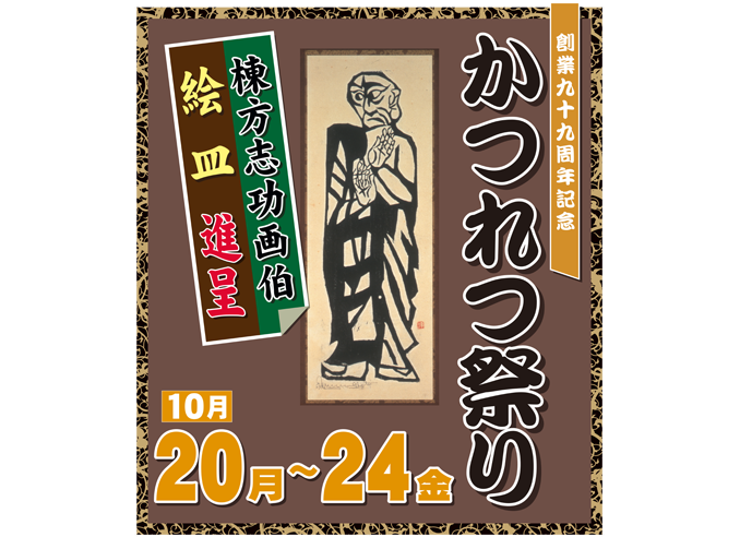 10月20日(月)から24日(金)までの5日間かつれつ祭りを開催致します。 祭り開催期間中ご来店のお客様へ棟方志功画伯の作品が描かれた絵皿を進呈致します。