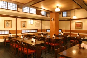 棟方志功画伯の作品で統一された和風づくりの店内は、落ち着いてゆったりした雰囲気でお食事が楽しめます。